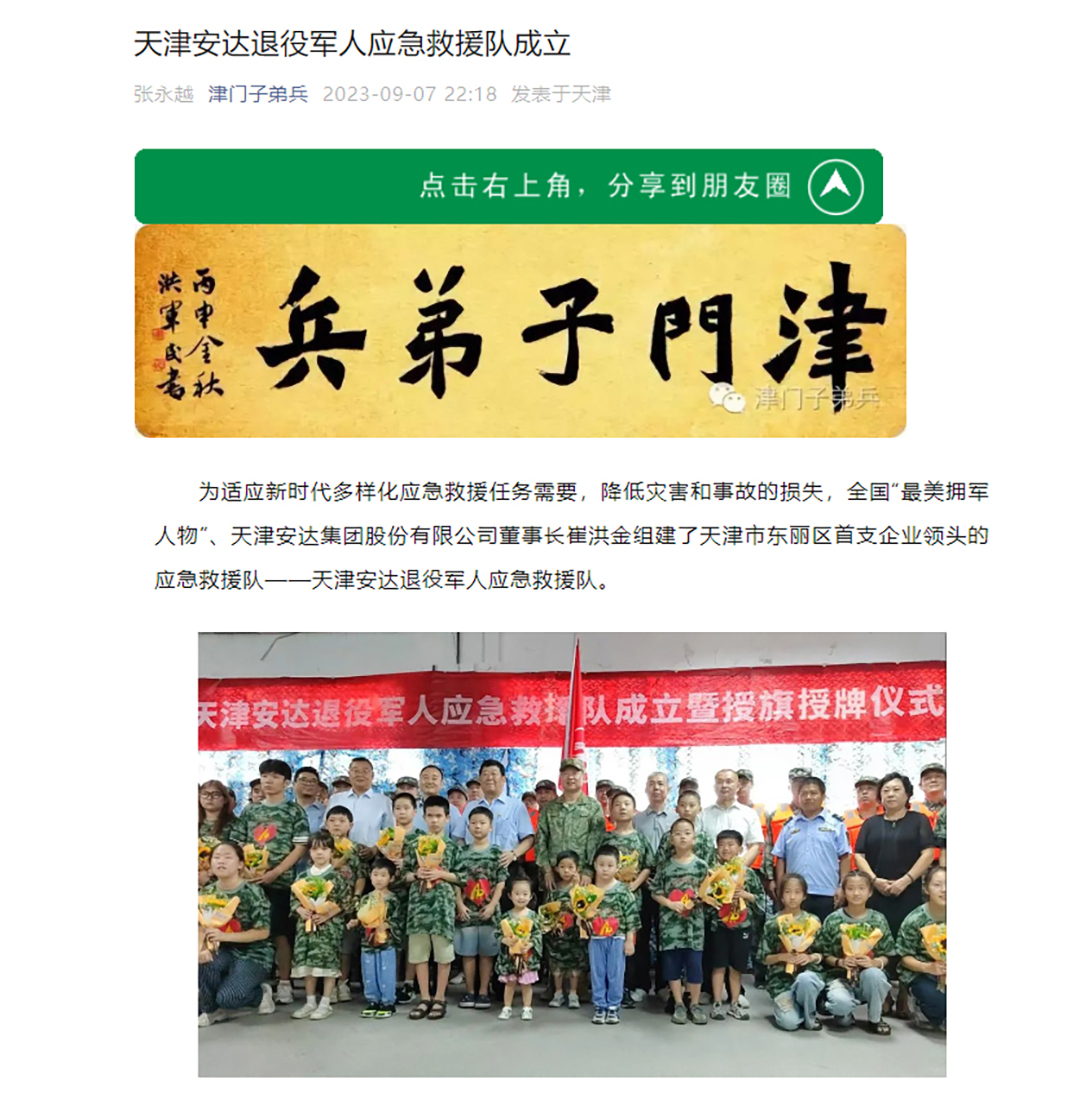 "津门子弟兵”宣传安达集团退役军人应急救...