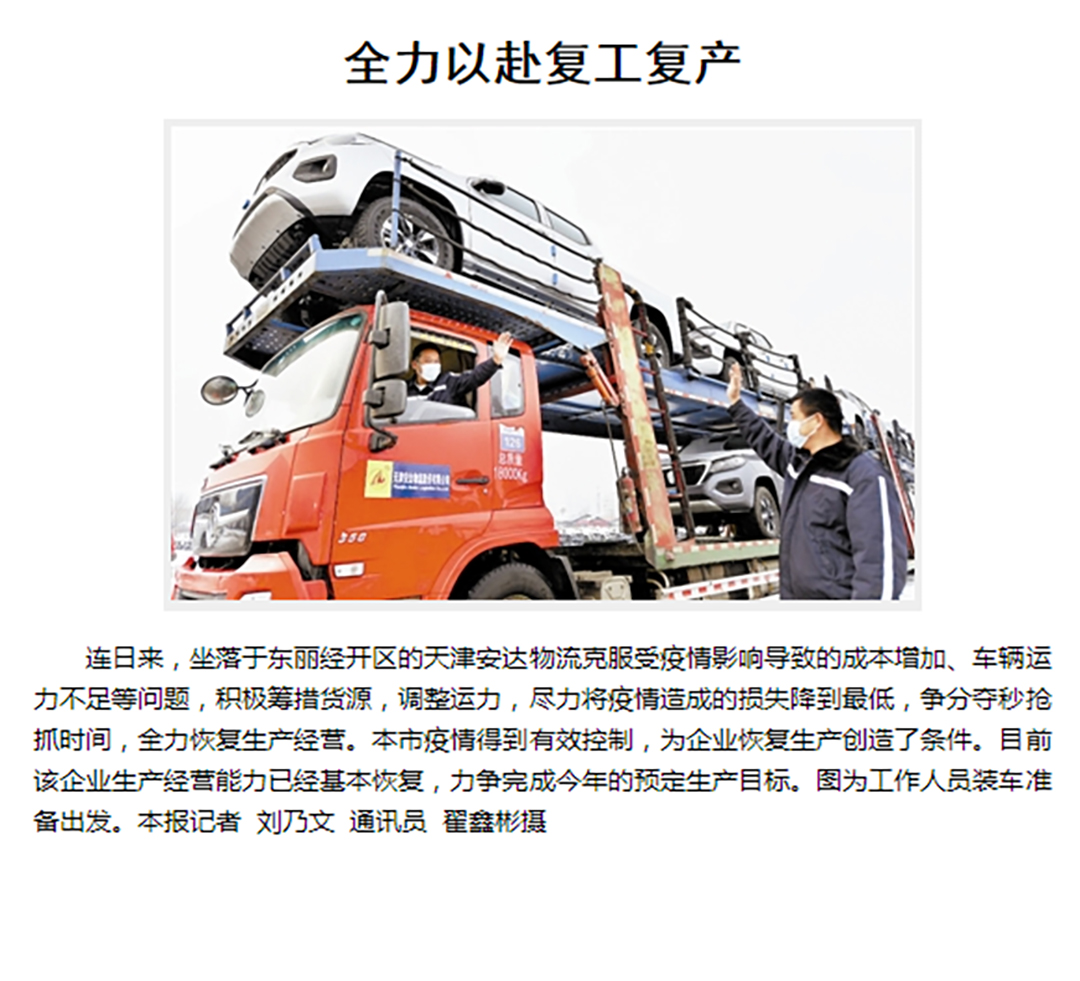 > 1月25日 《今晚报》 第二版 安达物流全力以赴复工复产