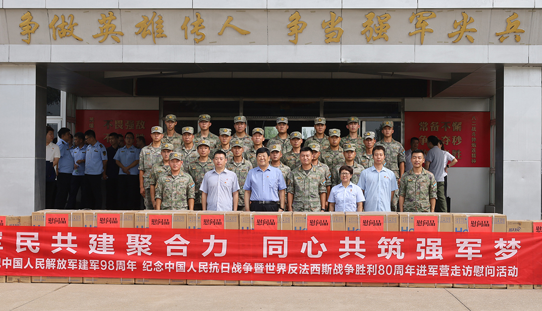 为庆祝中国人民解放军建军98周年,纪念中国人民抗日战争暨世界反法西斯战争胜利80周年,近日,东丽区应急管理局携手 “1+3+10+N”党建互联共建单位的13家企业,走进驻区解放军部队,开展“军民共建聚合力 同心共筑强军梦”军地共建、军民互动进军营走访慰问活动。全国最美拥军人物、区关爱退役军人协会名誉会长、安达集团党委书记、董事长崔洪金受邀参加此次活动。